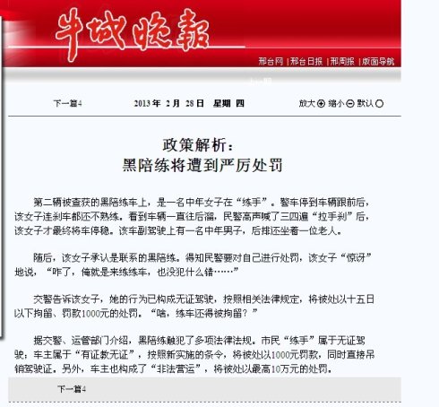 新華網(wǎng)重慶7月25日電(劉玲妙、姚慧、趙宇飛)隨著駕考熱不斷升溫,專門為“新手”服務(wù)的汽車陪駕市場(chǎng)也日益火爆。然而記者調(diào)查發(fā)現(xiàn),目前汽車陪駕市場(chǎng)亂象叢生,絕大多數(shù)是無(wú)資質(zhì)、無(wú)協(xié)議、無(wú)監(jiān)管的“黑陪駕”,由此帶來(lái)的安全隱患不容小視。